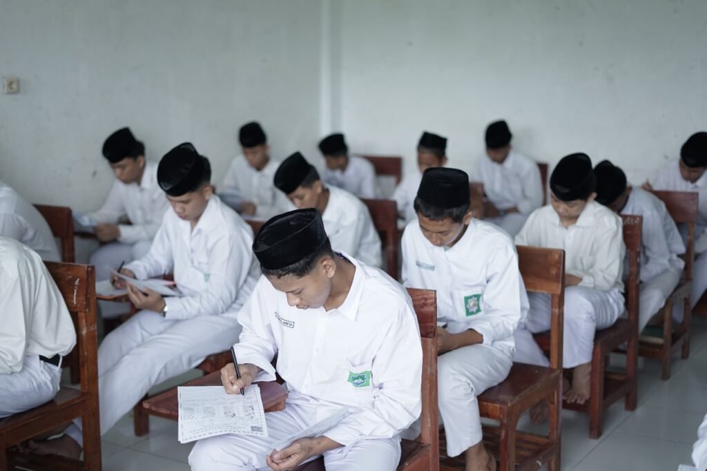 Setelah apel pembukaan, kegiatan dilanjutkan dengan ujian tulis, santri diuji dalam berbagai mata pelajaran seperti ilmu agama, bahasa Arab, dan ilmu umum. Ujian ini dirancang untuk mengukur pemahaman dan penguasaan materi pelajaran yang telah diajarkan selama semester ini. Santri ditantang untuk menunjukkan kemampuan mereka dalam merespons pertanyaan-pertanyaan yang bervariasi.